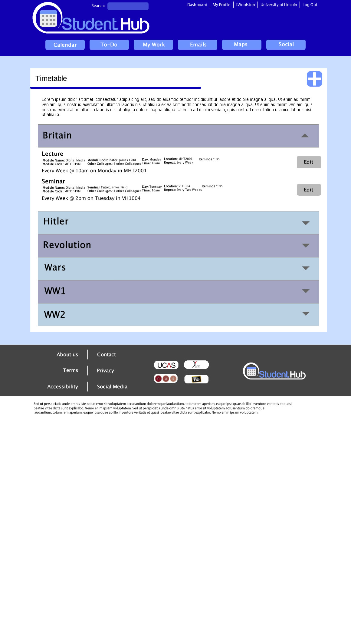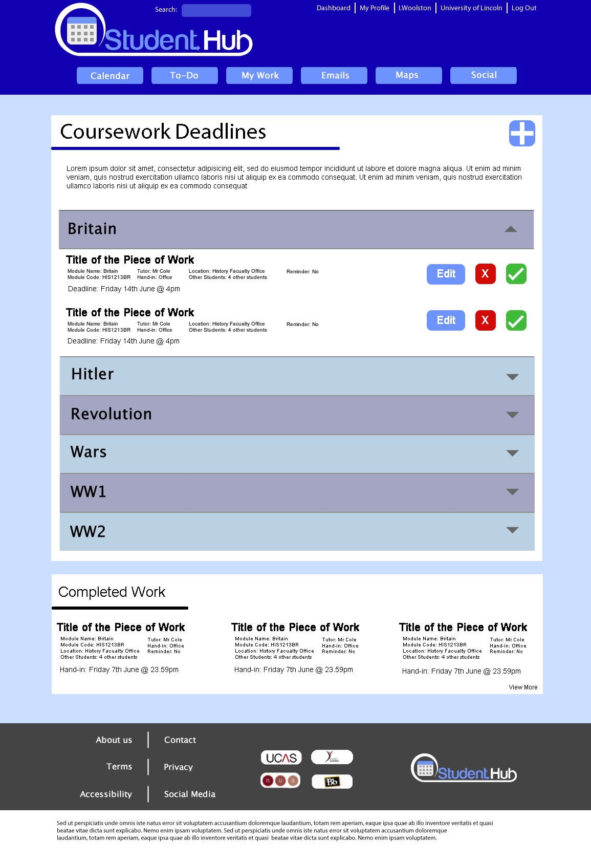 Here are the final designs I created for my website called StudentHub.
